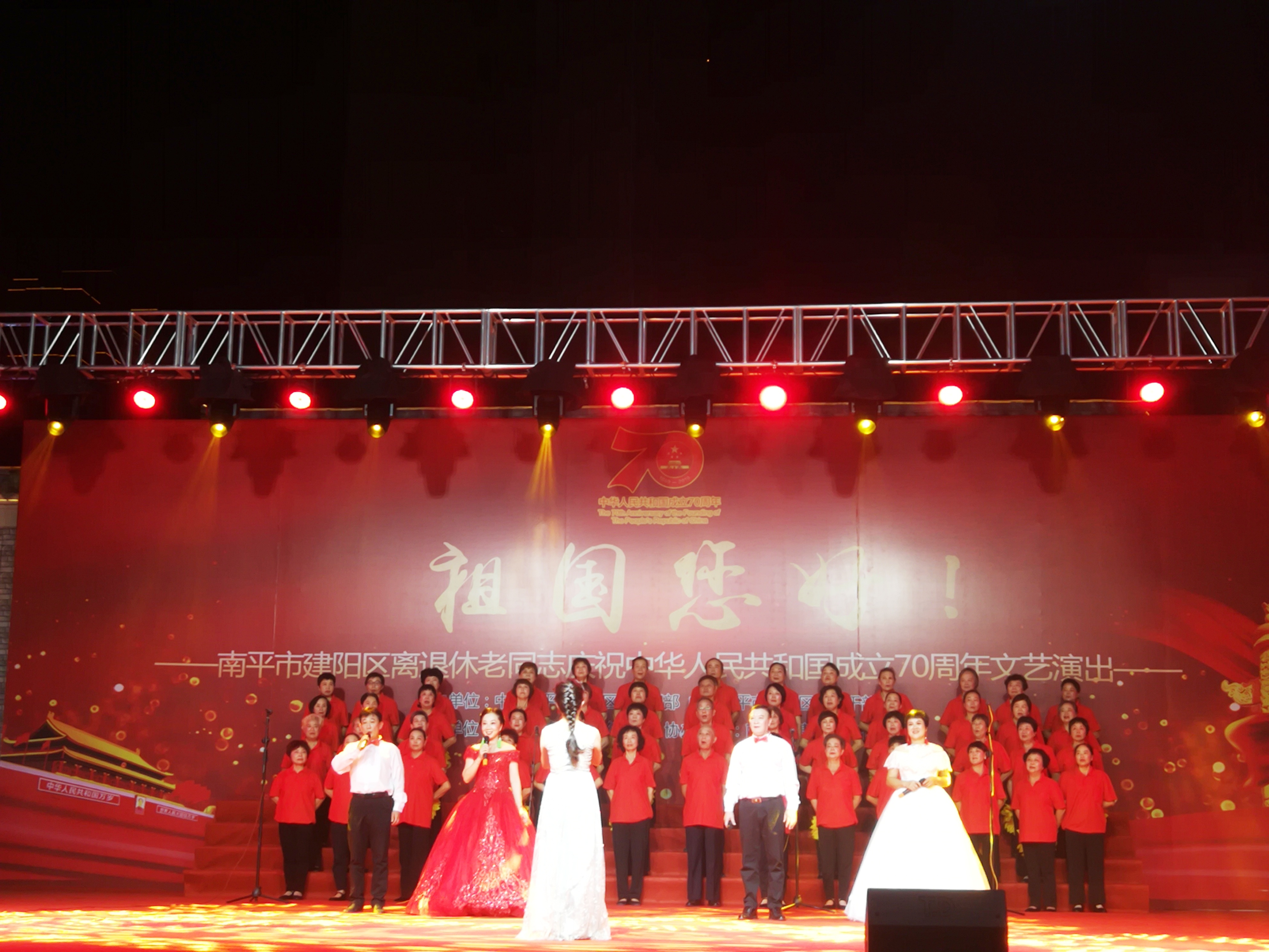文明風(fēng)10月12日訊(通訊員黃志宏)為慶祝中華人民共和國(guó)成立70周年,展現(xiàn)廣大離退休老同志熱愛(ài)黨、熱愛(ài)祖國(guó)、熱愛(ài)幸福生活的精神風(fēng)貌,10月11日,建陽(yáng)區(qū)舉辦“祖國(guó)您好”離退休老同志慶祝新中國(guó)成立70周年文藝晚會(huì),離退休老同志們用精心排練的舞蹈、歌舞、器樂(lè)演奏、大合唱、戲曲等精彩節(jié)目,向新中國(guó)成立70周年獻(xiàn)禮、為新時(shí)代喝彩。區(qū)領(lǐng)導(dǎo)方丹青、張曉虹、吳政禹等出席晚會(huì)。