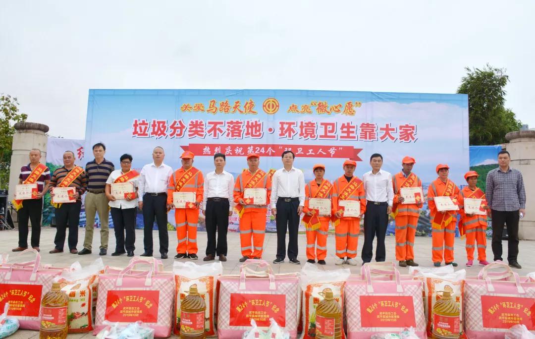 文明風10月29日訊 為慶祝福建省第24個“環(huán)衛(wèi)工人節(jié)”,10月26日,由縣總工會、縣城管局、團縣委主辦,縣環(huán)境衛(wèi)生管理處、福建省龍環(huán)環(huán)境工程有限公司武平分公司承辦的的關愛馬路天使 點亮“微心愿”暨垃圾分類不落地·環(huán)境衛(wèi)生靠大家專題活動在梁野廣場舉行??h政府副縣長鐘發(fā)貴,縣城管局局長劉志祿,縣總工會黨組書記、副主席邱東方,團縣委副書記賴麗花出席活動,來自主、承辦單位全體人員和青商會等愛心捐助單位代表參加了活動。