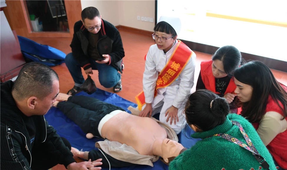 為更好地開展急救知識技能培訓(xùn),城廂區(qū)紅十字會(huì)向城廂區(qū)醫(yī)院捐贈(zèng)了6具人體模具,并由紅十字會(huì)志愿者及醫(yī)護(hù)志愿者現(xiàn)場教學(xué)演示,為志愿者們做心肺復(fù)蘇、人工呼吸等急救技能訓(xùn)練,現(xiàn)場學(xué)習(xí)氣氛高漲。(城廂區(qū)委文明辦供稿)