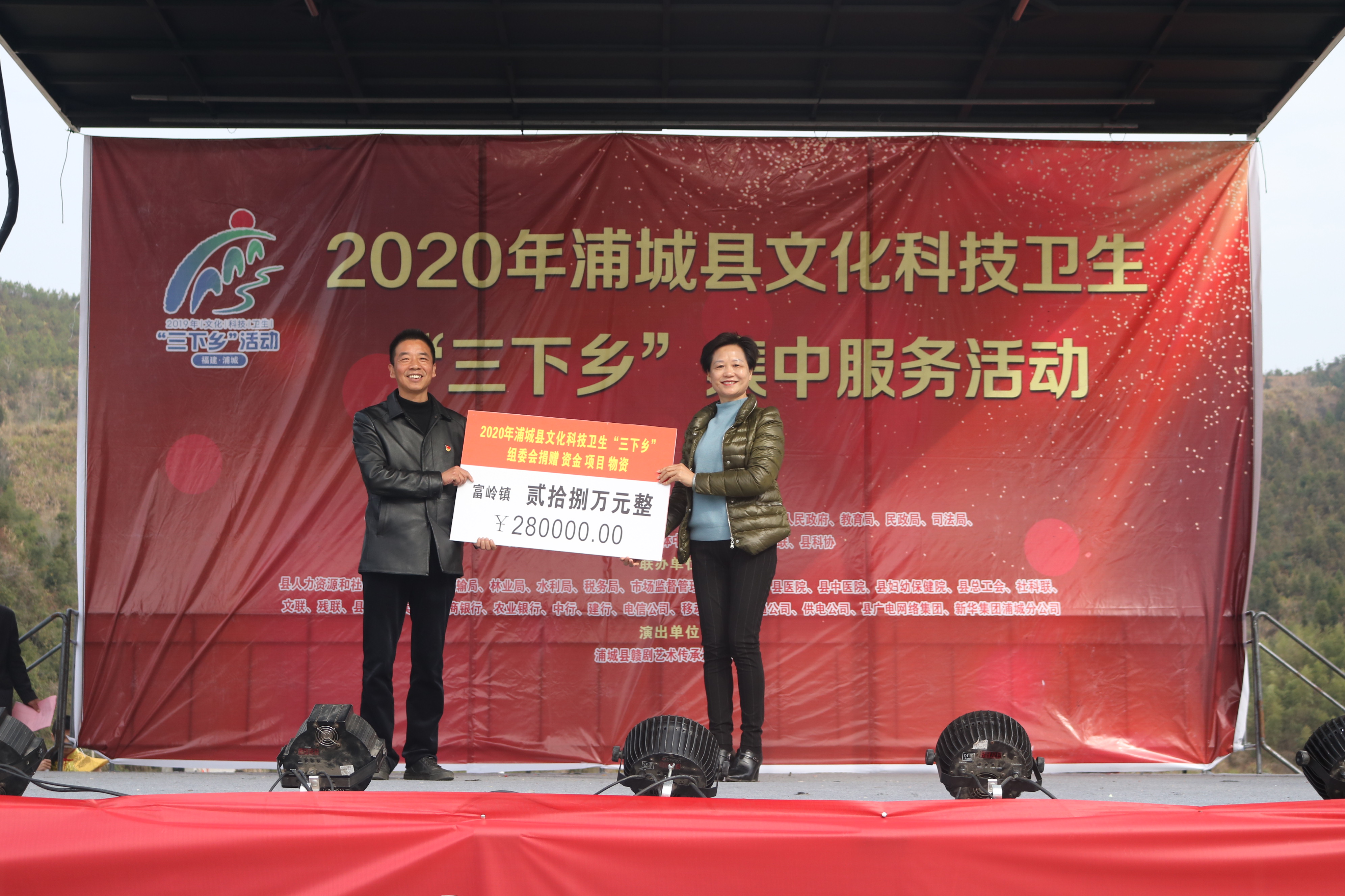 浦城縣委常委、宣傳部長向富嶺鎮(zhèn)頒發(fā)捐贈牌 浦城縣委文明辦供圖