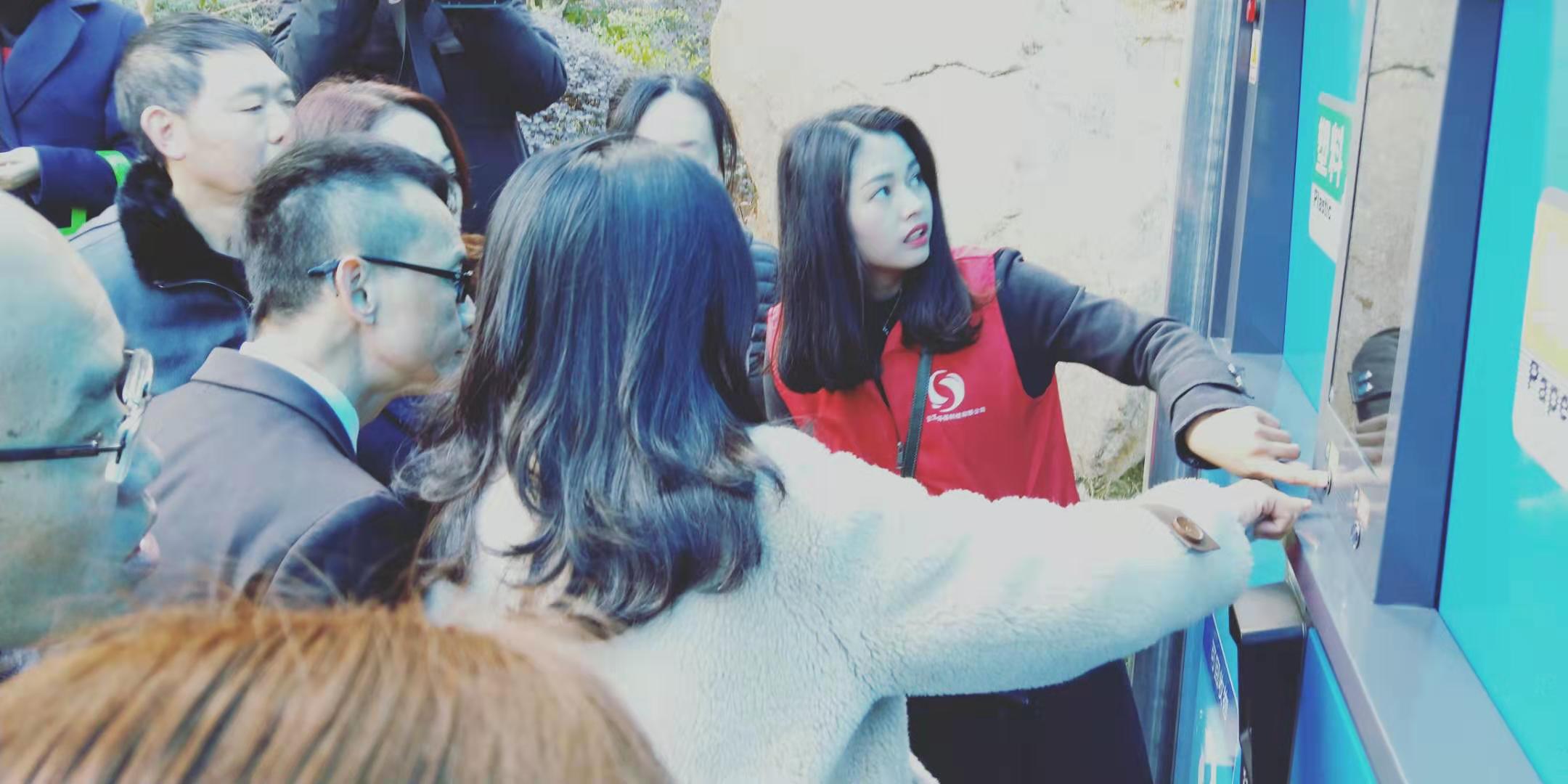 啟動儀式結(jié)束后,工作人員及志愿者指導(dǎo)居民如何進(jìn)行正確的垃圾分類以及垃圾分類投放箱的使用方法。工作人員幫助沒有智能機(jī)或不會使用智能機(jī)的居民發(fā)放居民卡,通過具體的指導(dǎo),教會居民掌握智能分類機(jī)的使用方式,并且在居民投入使用后,可以產(chǎn)生兌換積分,用于兌換包括垃圾袋在內(nèi)的生活用品,很多居民對這種分類方式表示大力的支持。
