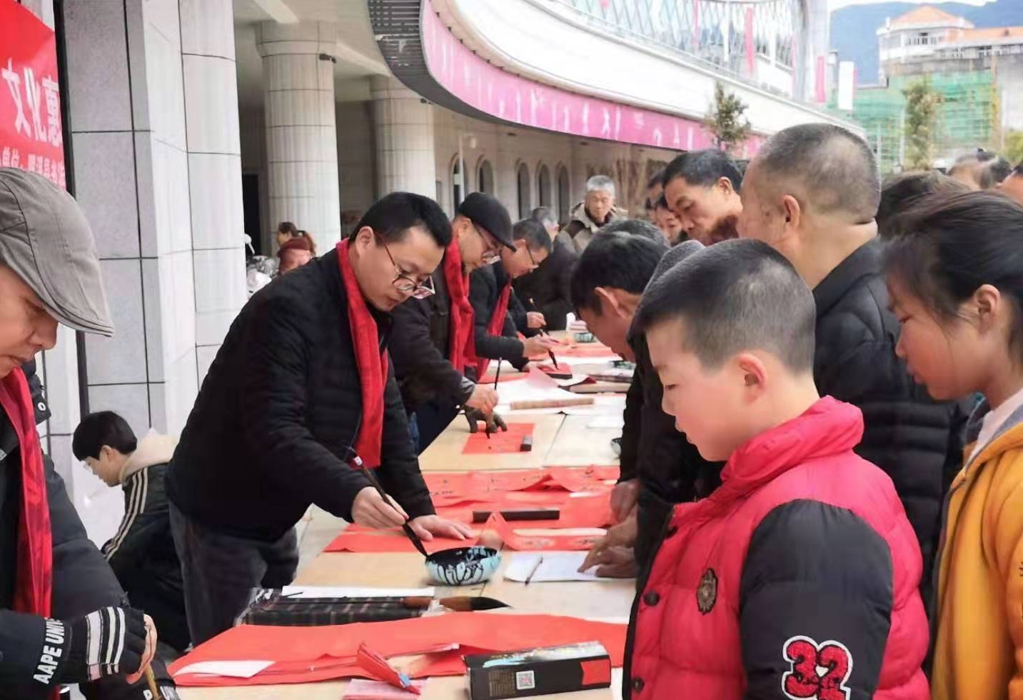 文明風(fēng)1月16日訊(通訊員 李火招)手寫春聯(lián)是筆尖上陳久彌香的年味,是記憶里紅紅火火的福祉,是民俗中傳承千年的寶藏,新春將至,明溪縣大力開展“迎新春 送春聯(lián)”活動(dòng),為鄉(xiāng)鎮(zhèn)、社區(qū)居民寫春聯(lián)送祝福,1月14日,縣書法協(xié)會(huì)在縣委宣傳部、縣文聯(lián)的領(lǐng)導(dǎo)下,先后走進(jìn)夏坊鄉(xiāng)、蓋洋鎮(zhèn)、夏陽(yáng)鄉(xiāng)為鄉(xiāng)村送上濃濃的年味。縣婦聯(lián)與雪峰鎮(zhèn)城南社區(qū)聯(lián)合聯(lián)建聯(lián)創(chuàng)單位開展迎新春送春聯(lián)活動(dòng),把濃濃的年味兒和新春祝福送給居民。