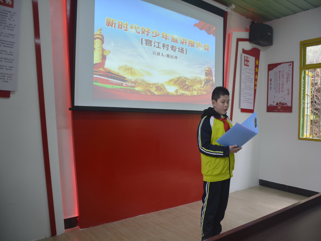 活動開始,市新時代好少年代表戴民睿做了個人的事跡演講,“用理想和追求為筆,用進取和奮發(fā)為墨,書寫更加燦爛輝煌的明天......”從小成績優(yōu)異,多才多藝,樂于助人的他給在場的同學們樹立了好榜樣,也增強了農(nóng)村留守孩自強自立的信心決心。