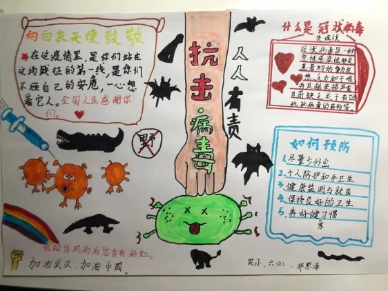 文明風(fēng)2月13日訊(通訊員 翁宜萍)在全國上下共同抗擊新冠肺炎的特殊時刻,龍巖實(shí)驗(yàn)小學(xué)開展防疫手抄報(bào)、繪畫、征文活動宣傳防疫健康知識,向奮戰(zhàn)在防疫一線的英雄們致敬!