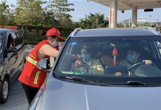 文明風(fēng)2月21日訊(通訊員 張榮森 何東方 葉春躍)道一聲“歡迎回來”,遞一袋寓意平安吉祥的水果,這溫情的一幕出現(xiàn)在進入同安區(qū)高速出口處。在那里服務(wù)的志愿者們向臨時停車辦理入廈登記的司機和乘客們表達真誠樸實的問候。