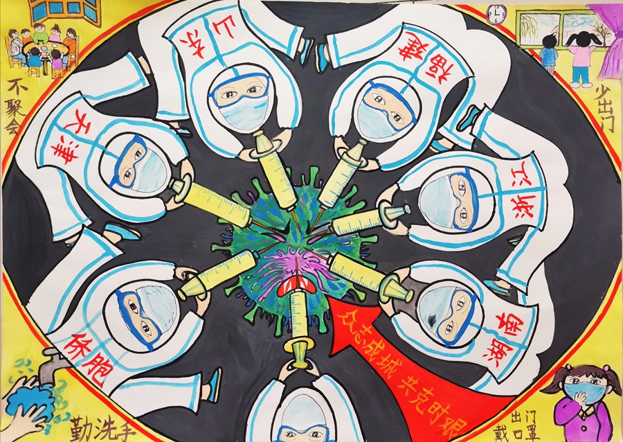 《萬(wàn)眾一心抗擊病毒》康丹 繪