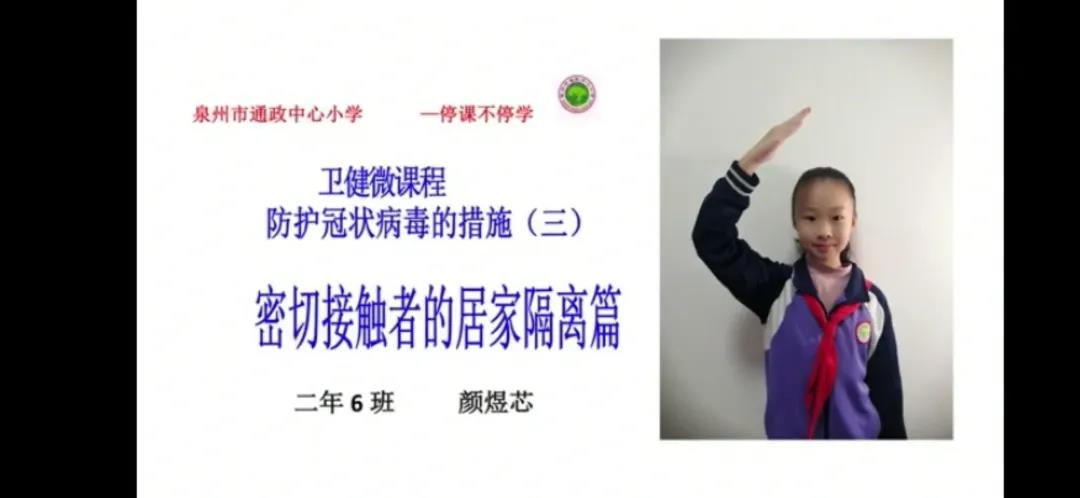 二年6班的顏煜芯制作的衛(wèi)健微課程《密切接觸者的居家隔離篇》 鯉城文明辦供圖