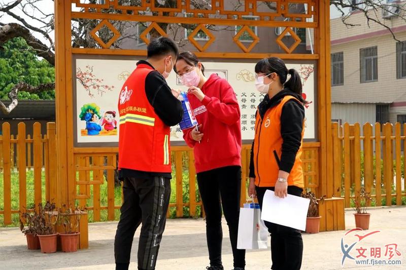 志愿者送上額溫槍。同安區(qū)委文明辦供圖