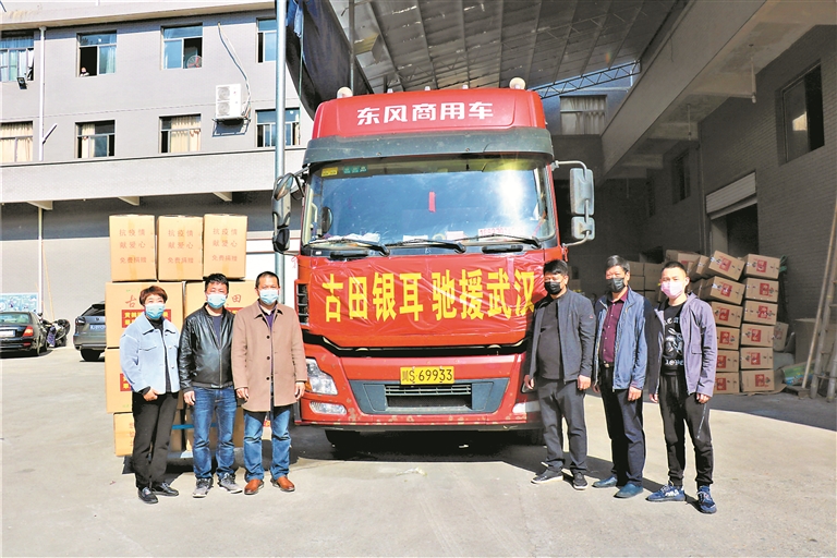 一方有難,八方支援。3月16日,一輛裝著滿滿一車的銀耳產(chǎn)品,貼著“古田銀耳馳援武漢”八個(gè)醒目大字的大貨車緩緩駛出古田縣食用菌基地。這是由古田42家銀耳企業(yè)自發(fā)開展的愛心捐贈(zèng)活動(dòng)。