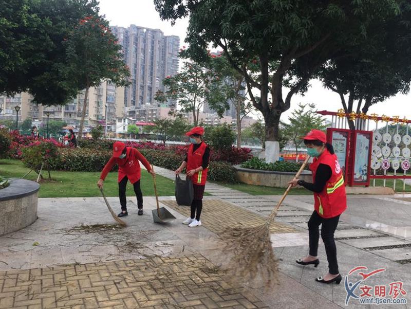 志愿者們在同安雙溪公園清理垃圾。同安區(qū)委文明辦供圖