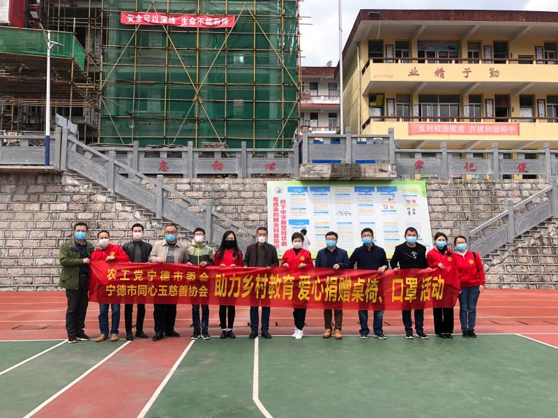 嶺下中學地處山區(qū),學校教學設備和設施相對比較落后,農工黨寧德市委會了解到這一情況后,與寧德市同心玉慈善協(xié)會共同向嶺下中學捐贈了課桌椅200套、一次性口罩3000個、文具45套。