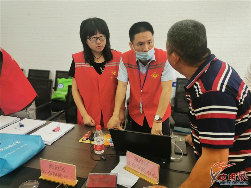 海滄區(qū)為農(nóng)場職工上門服務(wù),開展社保補繳面簽工作。(海滄區(qū)人社局供圖)