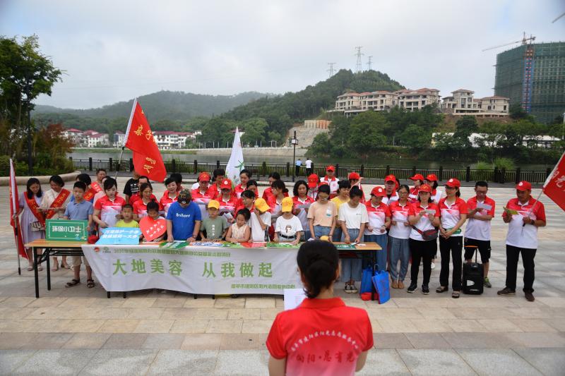 早晨7點(diǎn)30時(shí),志愿者們唱響《一個(gè)干凈的地球》歌曲,在“留給我們的孩子一個(gè)干凈的地球;留給我們的孩子一條清澈的河流;留給我們的孩子一個(gè)碧藍(lán)的天空;留給我們的孩子一片草原綠油油……”的動(dòng)聽(tīng)歌聲中,開(kāi)啟了大地美容“清潔一平米·行動(dòng)一公里”志愿服務(wù)活動(dòng)。來(lái)自區(qū)直機(jī)關(guān)、企事業(yè)、社區(qū)、志愿服務(wù)組織的志愿者和中小學(xué)生志愿者們組成了三個(gè)小分隊(duì),高舉隊(duì)旗,手持夾子、垃圾袋,向景觀沿河、公園廣場(chǎng)、森林綠道三個(gè)地點(diǎn)出發(fā),沿途撿拾游客們丟棄在各處的食品包裝、煙盒紙屑、塑料袋等垃圾,并向晨練的市民群眾宣傳垃圾分類和垃圾不落地的知識(shí),倡導(dǎo)市民養(yǎng)成不亂丟棄垃圾的習(xí)慣。一些在岸邊垂釣的市民看到志愿者們冒著酷暑,一點(diǎn)一點(diǎn)從大樹(shù)下、草叢中、河岸邊撿拾各種垃圾,也主動(dòng)將隨身攜帶的塑料袋等垃圾收拾好,放入垃圾分類箱中,并表示今后垂釣時(shí),要清理完垃圾才收桿。