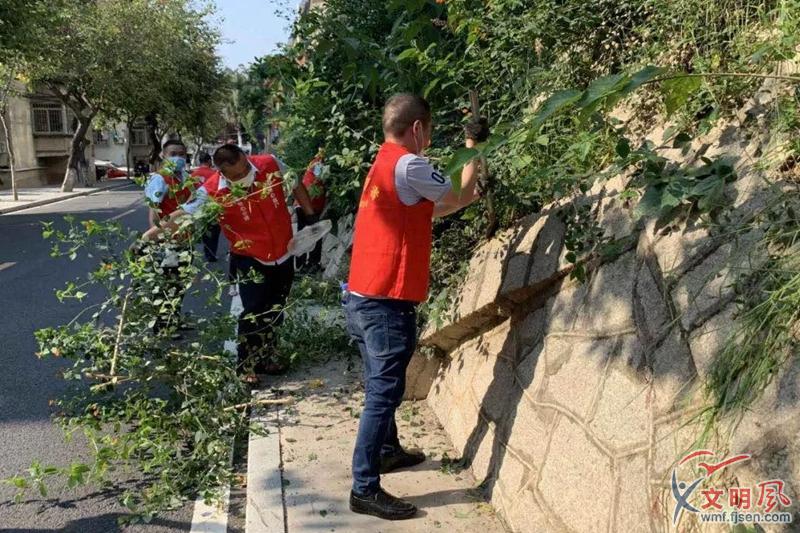 志愿者清理衛(wèi)生死角。湖里街道供圖