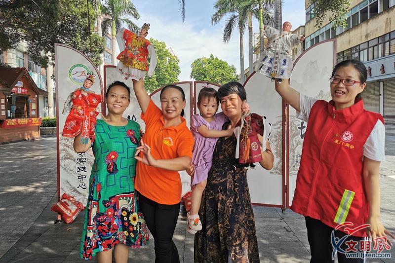 志愿者指導居民操作木偶。同安區(qū)委文明辦供圖