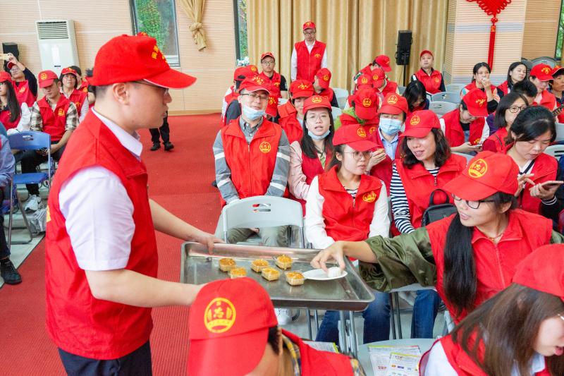 志愿者分發(fā)現(xiàn)場(chǎng)制作的月餅,讓大家一邊欣賞節(jié)目一邊品嘗月餅 閩清縣委文明辦供圖