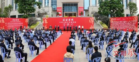 文明風(fēng)12月7日訊(通訊員 林娟娟)12月4日上午,第7個(gè)國家憲法日,“法治漳州”全國書畫名家邀請展在漳州中級法院開幕。