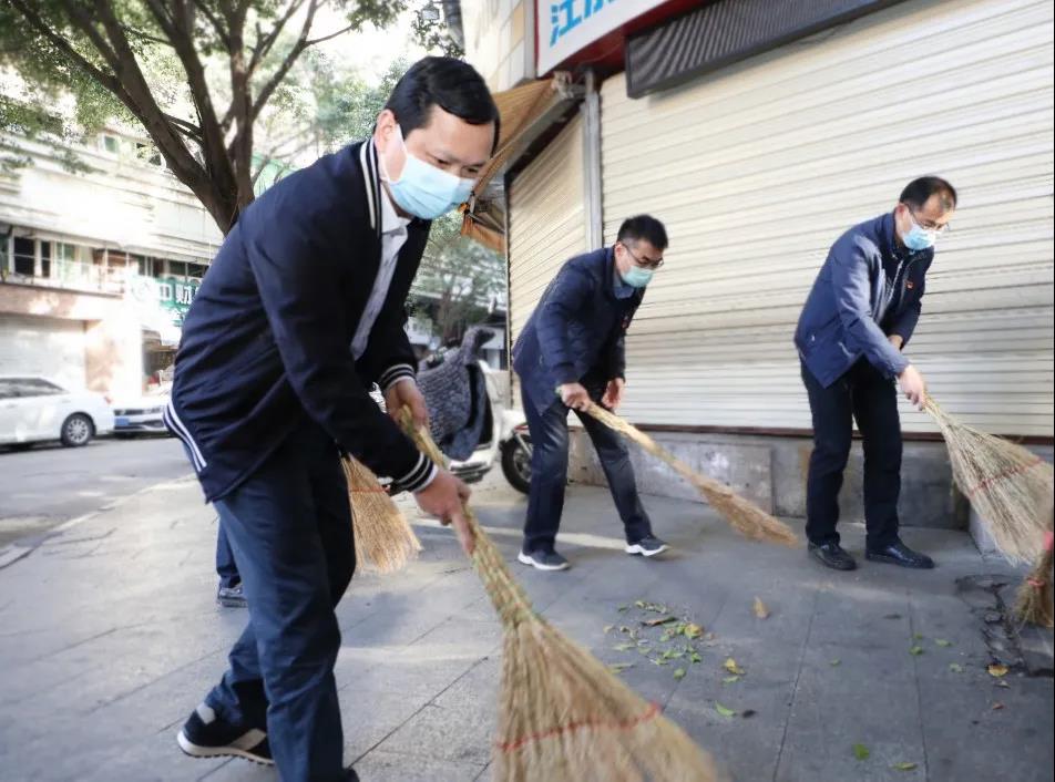在江南街道王宮社區(qū)古榕公園,區(qū)長(zhǎng)黃輝燦與街道、社區(qū)工作人員一起清理地面上的落葉、雜草等垃圾,對(duì)于頑固的衛(wèi)生死角,反復(fù)檢查,確保清除到位。