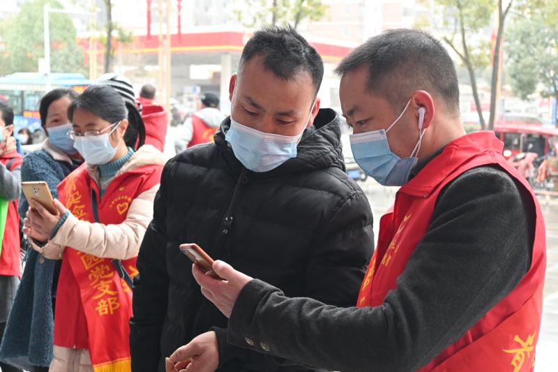 志愿者們在車站出入口、候車室開展文明引導(dǎo)志愿服務(wù)行動,勸導(dǎo)出入動車站的群眾要自覺佩戴口罩、接受體溫測量、出示健康碼,同時發(fā)放疫情防控宣傳單、返鄉(xiāng)人員登記二維碼宣傳單和文明宣傳手冊。幫助旅客使用客戶端和自動售票機辦理購票、取票業(yè)務(wù),針對部分不會使用智能手機或沒有手機的旅客,志愿者還通過教授使用智能手機、采用人工登記等方式,為旅客提供數(shù)字化便民服務(wù),幫助他們快速通過卡口,為他們的出行提供便利。