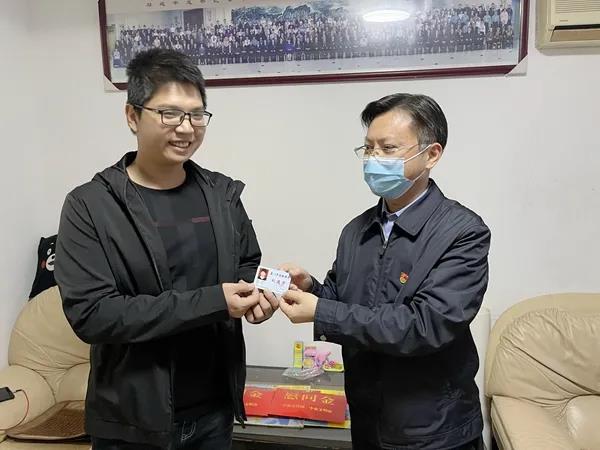 廈門市委宣傳部副部長、市委文明辦主任賴朝暉向張涵、張輝兄弟倆贈送了廈門市道德典范禮遇卡