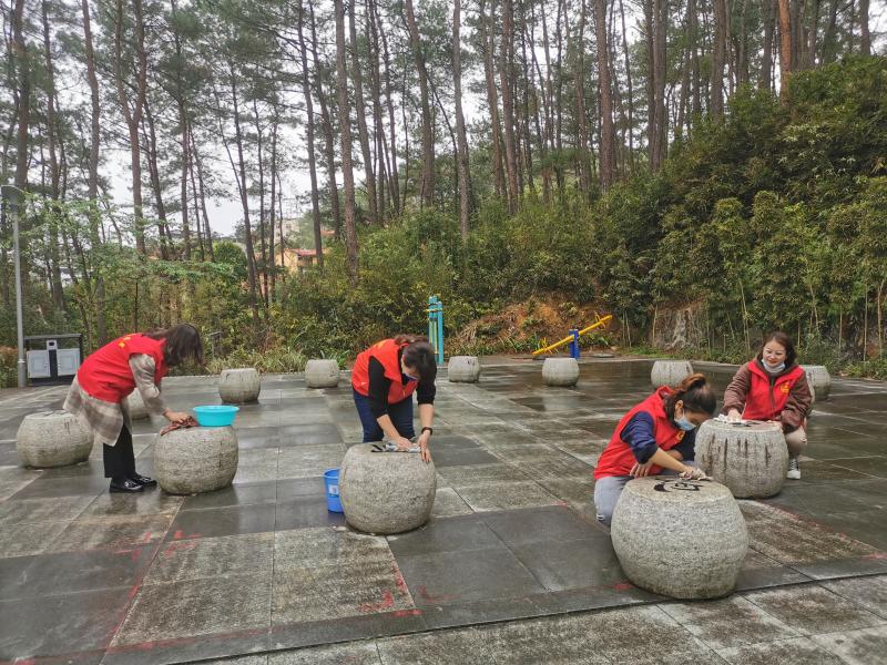 與祠堂內(nèi)的熱鬧溫情相比,上蓮鄉(xiāng)民俗館附近的山坡上有一群人正干得熱火朝天——上蓮鄉(xiāng)機(jī)關(guān)干部和志愿者們在上蓮鄉(xiāng)領(lǐng)導(dǎo)班子成員帶領(lǐng)下,為上蓮鄉(xiāng)老人們種上了一片長生林,還開展了“六清”整治等志愿活動(dòng)。
