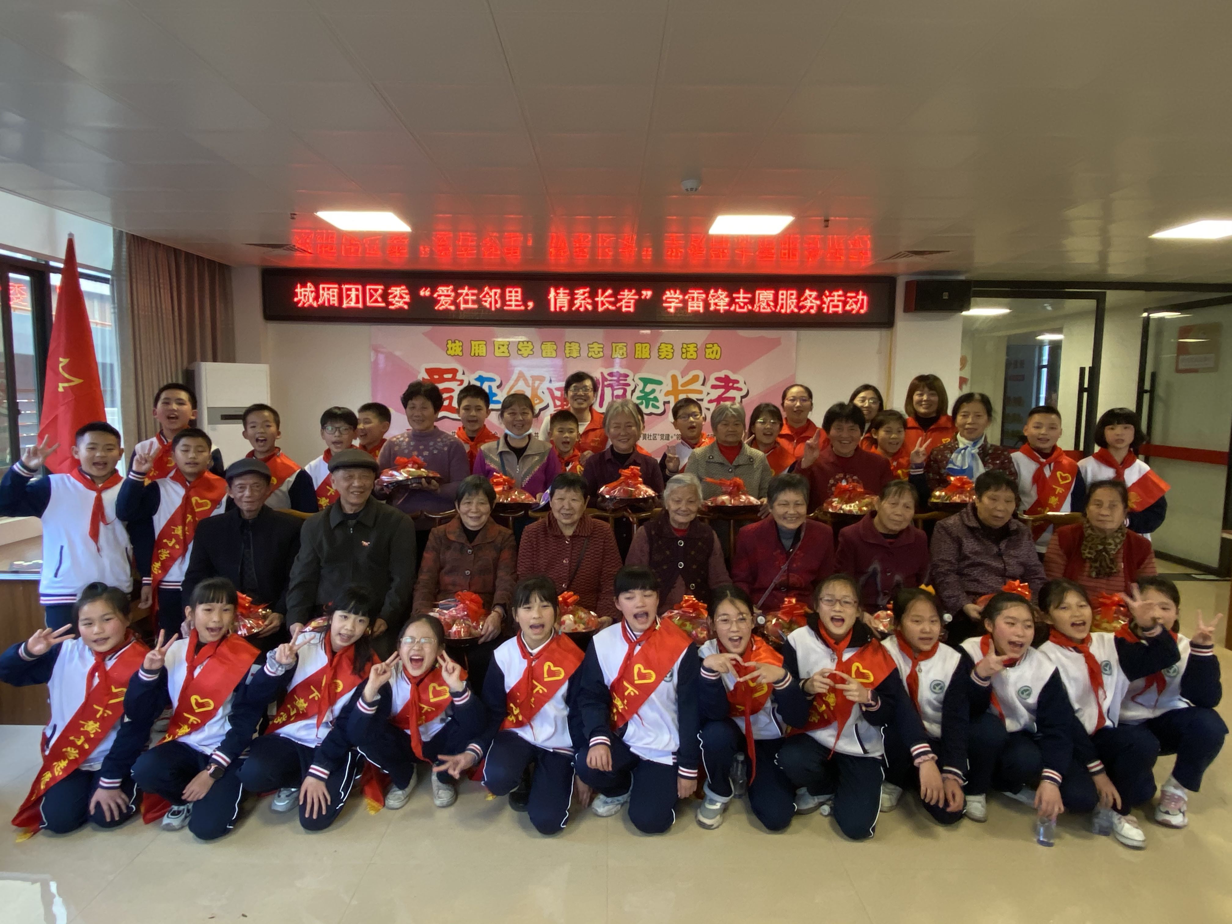 下黃小學(xué)的師生志愿者與老人合影 吳偉鋒供圖