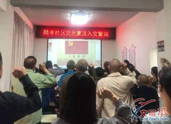 黨史講座開始前,黨員們重溫入黨誓詞。(陸豐社區(qū)供圖)