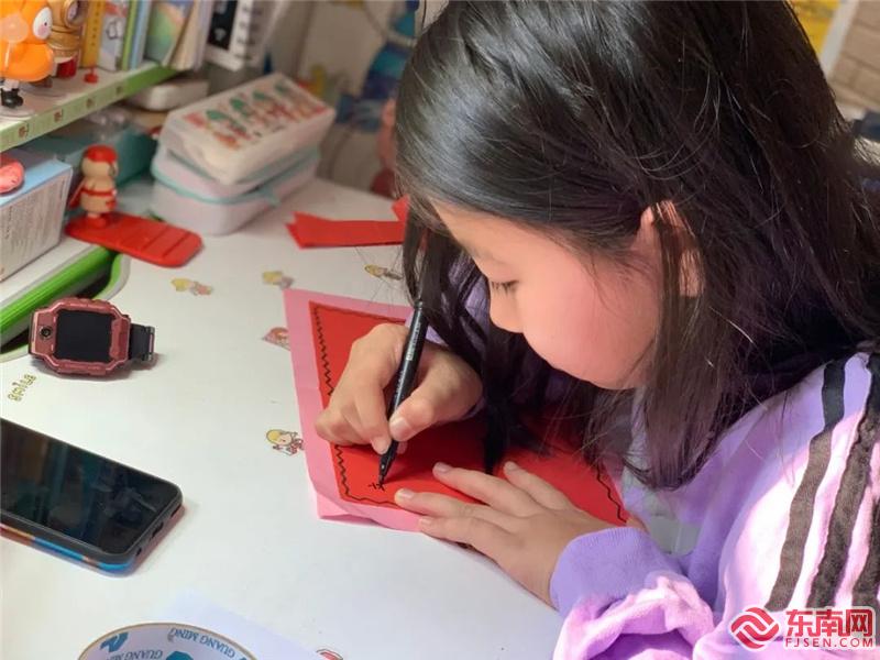 小志愿者們動(dòng)手為老人們制作生日賀卡。前浦南社區(qū)供圖