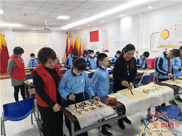 “學(xué)黨史,守初心”“鑒往知來、踐行使命”……簡單幾個(gè)字蘊(yùn)含著鑒往知來擔(dān)使命,回望黨史悟初心的意義。在“翰墨獻(xiàn)禮建黨百年”書法培訓(xùn)活動(dòng)現(xiàn)場,學(xué)生們正一筆一畫、聚氣凝神地進(jìn)行書法練習(xí),教師們則耐心引導(dǎo)學(xué)生,細(xì)心講解每個(gè)字的結(jié)構(gòu)和書寫要點(diǎn)。當(dāng)天,學(xué)生們還挑選出自己喜愛的書籍,參與“讀書分享會(huì)”,通過自身的感悟與同學(xué)們分享書中的精彩片段和感悟,現(xiàn)場氣氛熱烈。