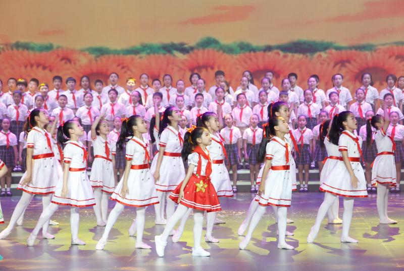 伴隨著“我們是共產主義接班人,繼承革命先輩的光榮傳統(tǒng)……”嘹亮歌聲,晚會在熱烈而壯觀的開場儀式“向黨敬禮”中拉開帷幕,奮發(fā)昂揚的曲調將現場氣氛迅速點燃!本場晚會集歷史感、故事性、童趣化于一體,歡快熱烈與恢弘厚重并舉、家國情懷與親情友愛兼容、紅色傳承與勵志追夢共振,學黨史、感黨恩、跟黨走。