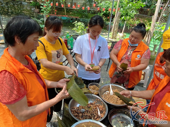 居民和志愿者一同包粽子。(同安區(qū)委文明辦供圖)