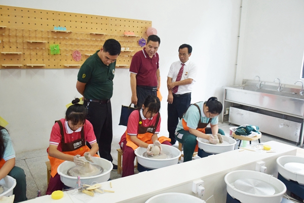 參會(huì)人員參觀學(xué)校陶藝吧