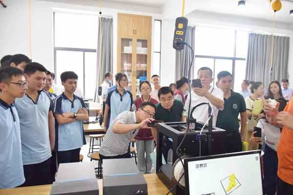參會(huì)人員參觀學(xué)校創(chuàng)客實(shí)驗(yàn)室3D打印室