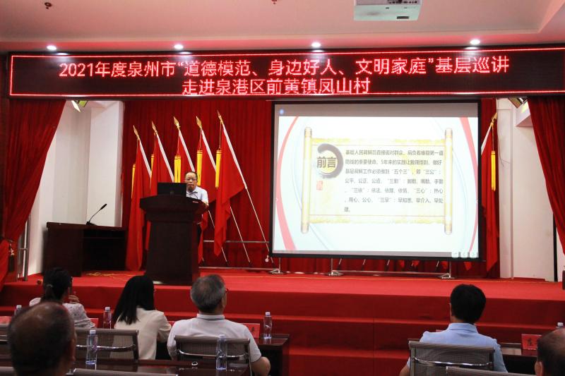文明風(fēng)7月21日訊(通訊員陳燕燕)文明之行,德耀泉州。21日上午,2021年度泉州市“道德模范、身邊好人、文明家庭”基層巡講走進(jìn)泉港區(qū)前黃鎮(zhèn)鳳山村,積極推動(dòng)學(xué)習(xí)宣傳道德模范、文明家庭和身邊好人活動(dòng)常態(tài)化,在全國(guó)文明城市創(chuàng)建中營(yíng)造崇德向善的濃厚氛圍。