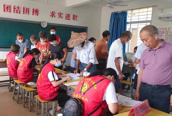 在接種點(diǎn),志愿者承擔(dān)信息登記等工作。安溪團(tuán)縣委 供圖
