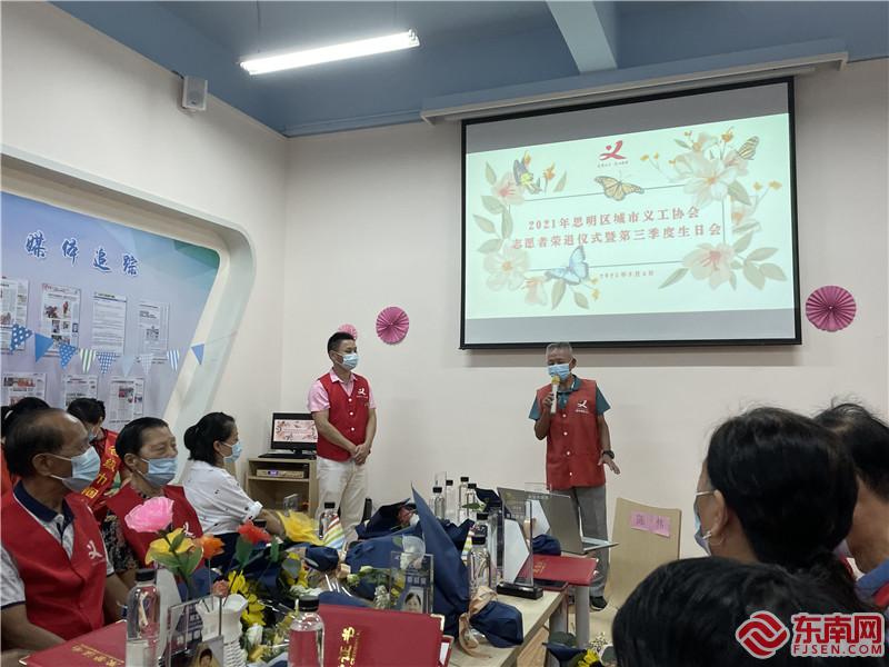 參加本次榮退儀式的有代表城市義工協(xié)會老年、中年、青年、少年四個(gè)年齡層次的80位志愿者,主辦方表示,這寓意著志愿服務(wù)的精神薪火相傳,在不同年齡段的志愿者中傳遞一份志愿精神。在榮退儀式上,已在輪渡碼頭志愿服務(wù)驛站服務(wù)近10年的藍(lán)永生莊重的把旗幟交給下一任的負(fù)責(zé)人,并鼓勵所有志愿者,繼續(xù)發(fā)揚(yáng)志愿服務(wù)精神,為社會文明做出貢獻(xiàn)。本次活動同時(shí)為第三季度生日的志愿者舉辦季度生日會,以及為每月服務(wù)標(biāo)兵舉行表彰活動。