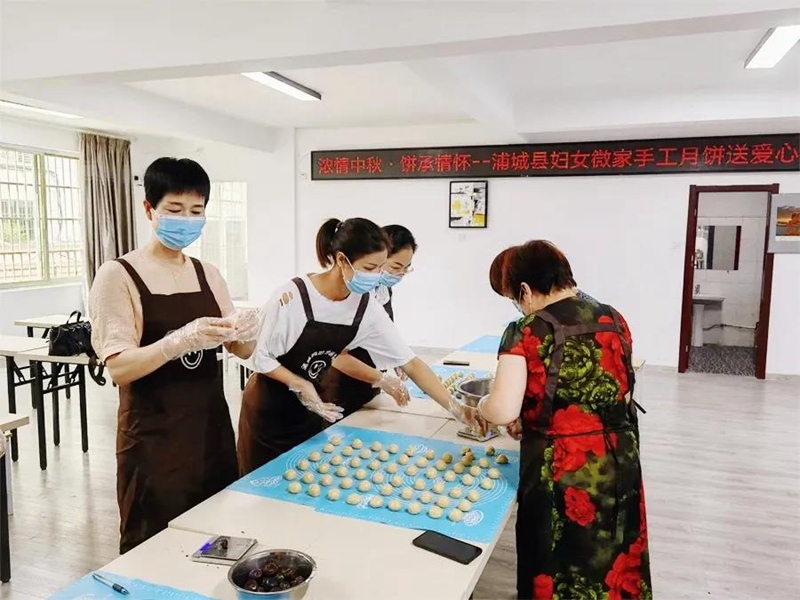 浦城縣婦聯(lián)組織“婦女微家”的微家長們制作愛心手工月餅 南平市婦聯(lián)供圖