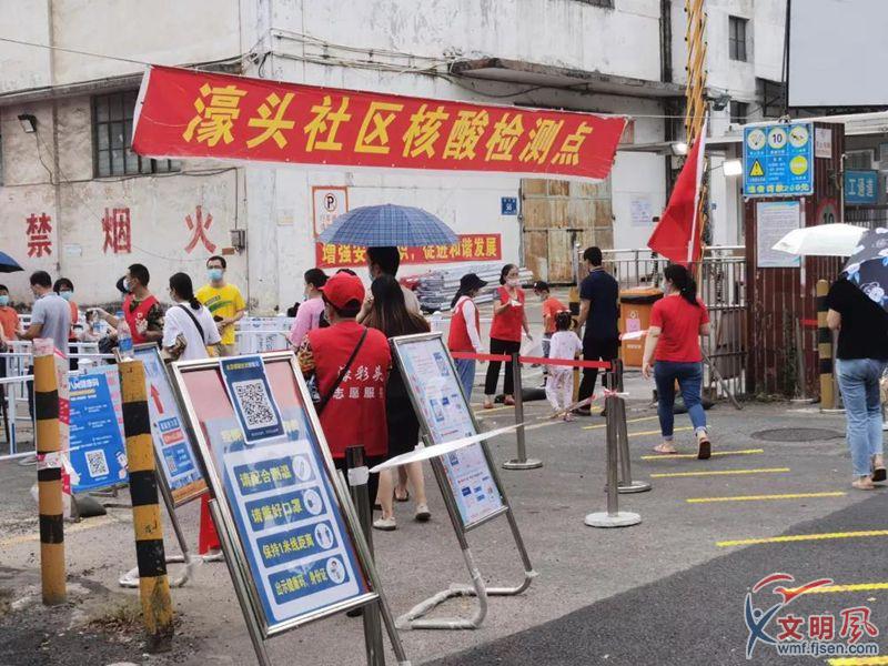 湖里區(qū)濠頭社區(qū)核酸檢測(cè)現(xiàn)場(chǎng),志愿者維持現(xiàn)場(chǎng)秩序。(湖里街道供圖)