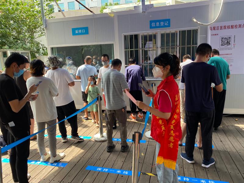 志愿者們身著紅馬甲,在君西河公園核酸監(jiān)測點協(xié)助開展人員核酸登記、宣傳引導、秩序維護及其它便民服務。他們細心指導市民進行核酸檢測信息采集平臺二維碼預登記工作,幫助老年人掃碼登記、解答現(xiàn)場疑問、在現(xiàn)場宣傳防疫小常識、維護現(xiàn)場秩序等,累計服務市民1200余名,發(fā)放宣傳單頁1200余份。