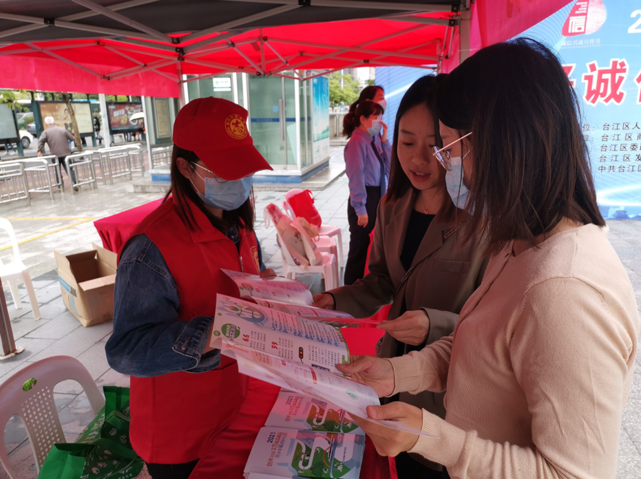文明風(fēng)10月25日訊 為進一步加強誠信宣傳教育,提升全社會誠實守信意識,營造放心消費環(huán)境和誠信營商環(huán)境,10月22日上午,2021年臺江區(qū)“誠信興商宣傳月”活動在臺江區(qū)寶龍廣場舉行。
