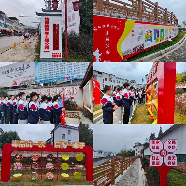 姑田鎮(zhèn)禁毒主題公園位于姑田中心小學(xué)附近,設(shè)置了導(dǎo)視牌、禁毒宣傳牌、河道護(hù)欄禁毒元素標(biāo)識等,主要介紹習(xí)近平總書記對禁毒工作的重要指示、毒品的種類和危害、如何防毒拒毒等內(nèi)容,并將禁毒元素融入到公園的環(huán)境、設(shè)施中,集知識性、互動性、美觀性于一體。