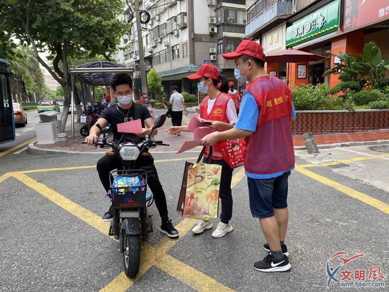 志愿者分發(fā)文明宣傳單。(興隆社區(qū)供圖)