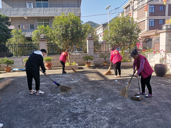 閩侯縣婦聯(lián)組織志愿者對庭院進行清掃。閩侯縣委文明辦供圖