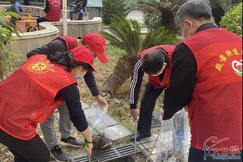 志愿者清理衛(wèi)生死角。(殿前街道供圖)