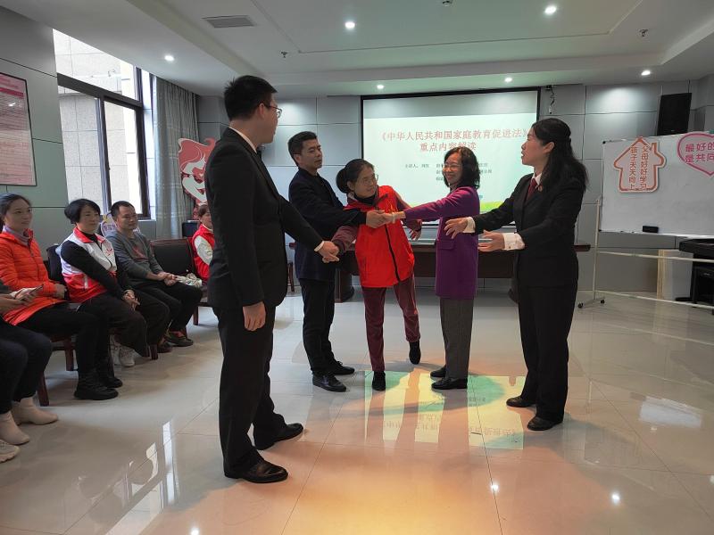 “家長是第一任老師、家庭是第一個課堂”,家庭教育是教育的開端,關(guān)乎未成年人的健康成長和家庭的幸福安寧,也關(guān)乎國家發(fā)展、民族進步、社會穩(wěn)定,少年強,則國強;少年智,則國智。全國道德模范、南平市中級人民法院四級調(diào)研員、省婦聯(lián)兼職副主席詹紅荔結(jié)合長期少年審判工作案例,并以自身的家庭教育體驗,給大家?guī)砑彝コ砷L的分享,最后她通過“解手鏈”互動游戲,告訴大家,當(dāng)家庭生活中遇到問題,要冷靜思考,相互信任,互相配合才能解決問題。