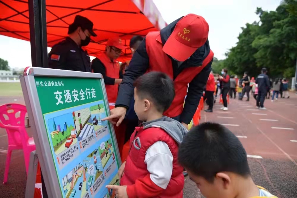 志愿者宣傳道路交通安全知識(shí)(泉港區(qū)后龍鎮(zhèn)供圖)