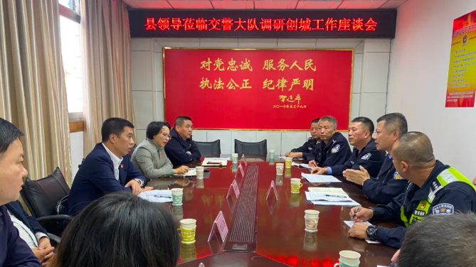 調(diào)研中,縣領(lǐng)導要求,要統(tǒng)一思想認識,進一步增強創(chuàng)建全國文明城市的責任感和使命感,舉全警之力、集全警之智,為不斷推動城市全面提檔升級、社會全面進步貢獻公安力量。