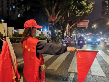 志愿者在轄區(qū)路口開(kāi)展文明交通勸導(dǎo)服務(wù)(臺(tái)江區(qū)委文明辦供圖)