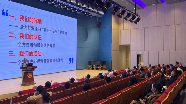心理輔導(dǎo)站工作人員作工作經(jīng)驗(yàn)分享。東南網(wǎng)記者 林杰 攝
