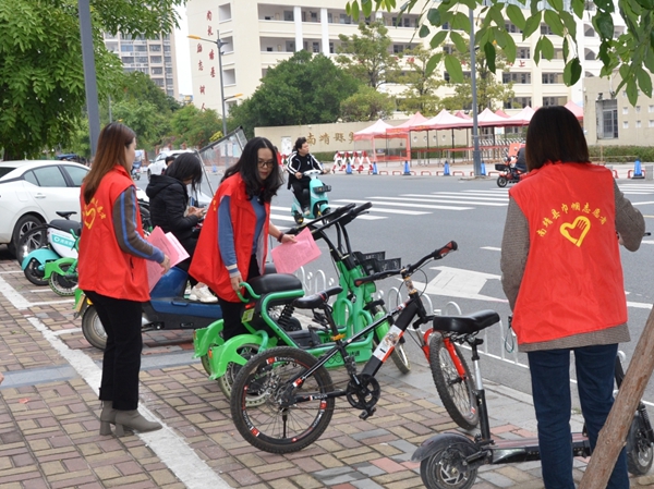 為規(guī)范交通秩序,引導(dǎo)群眾安全出行,巾幗志愿者們?cè)诜艑W(xué)高峰時(shí)段,到實(shí)驗(yàn)小學(xué)校門口引導(dǎo)接送孩子的家長有序停放車輛,并及時(shí)勸阻未佩戴安全頭盔等不文明行為,耐心細(xì)致地向他們講解文明創(chuàng)建相關(guān)知識(shí),讓廣大家長樹牢文明意識(shí),為孩子們樹立榜樣,共同營造文明城市良好氛圍。此外,巾幗志愿者們還對(duì)違停自行車、電動(dòng)車進(jìn)行規(guī)范,維護(hù)校園周邊秩序,助力文明、平安校園創(chuàng)建。